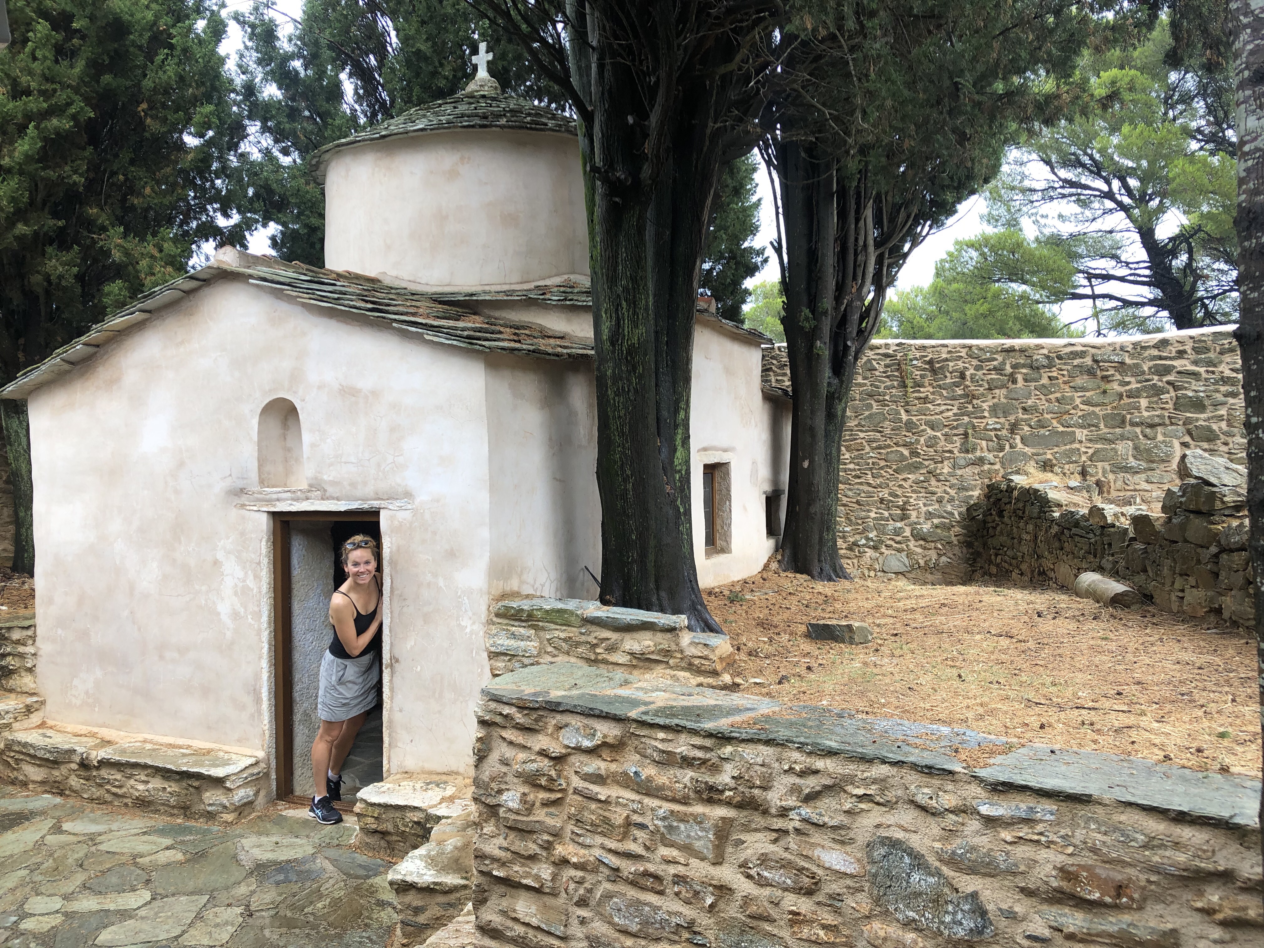 The next morning it poured down rain, ruining my plans to hike to the Agios Ioannis church at Kastri, made famous by Mamma Mia. Instead we opened the windows and got back into bed. We journeyed out after the storm to the tiny temple of Taxiarches, surrounded by fir trees and totally empty. It was a beautiful place, made even more so thanks to the total silence. We only saw each other and four-legged friends on our three hour trip. It was the perfect lead-up to a week with friends in Skiathos-town, where quiet and rest weren’t on top of anyone’s list of priorities.