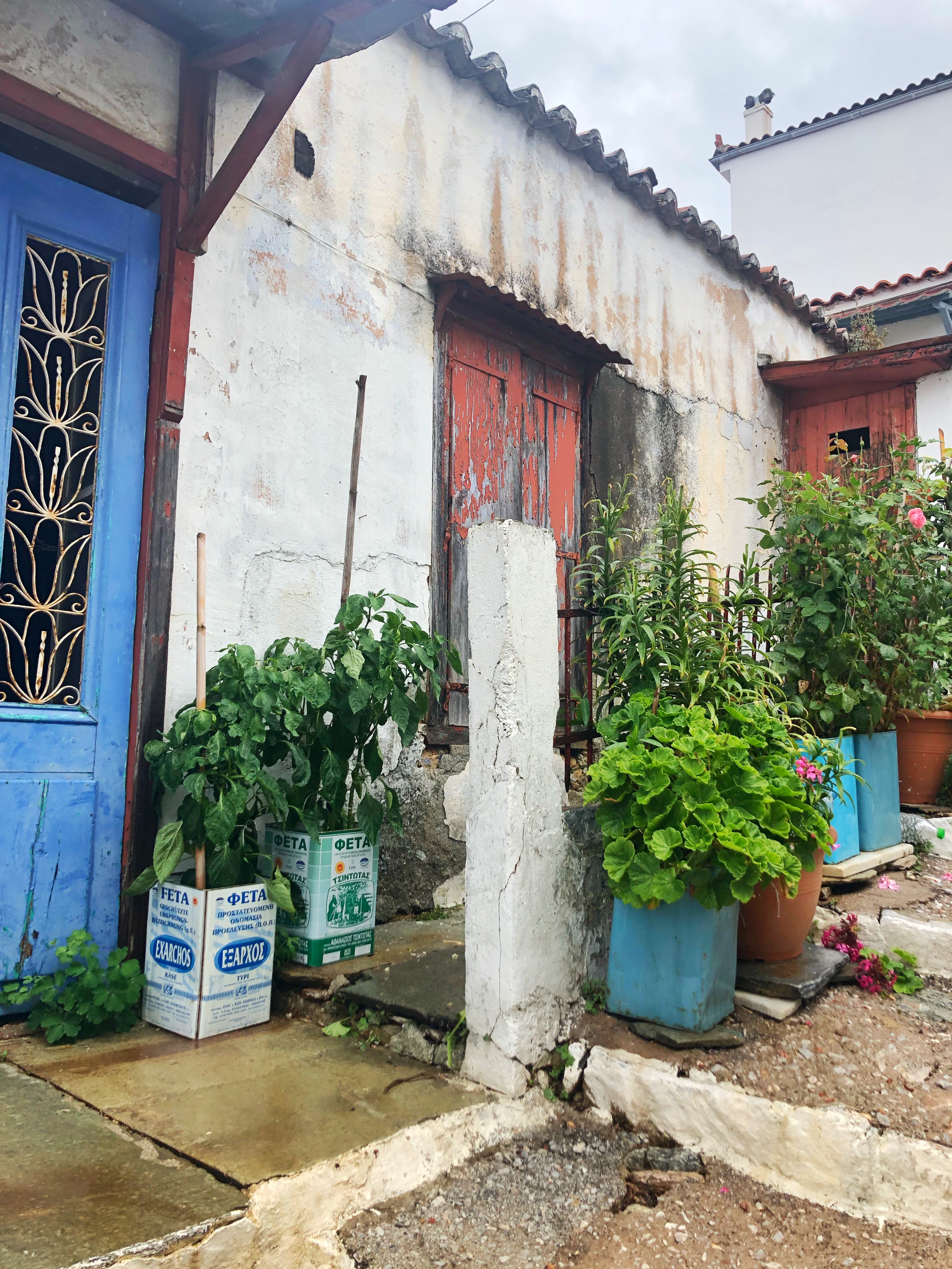We hiked down the mountain to explore ruins of Roman baths near the port at Loutraki. The hike was a bit treacherous, better suited for donkeys than humans. The baths? They were a smidge underwhelming (Is that ancient or just a rock? Is this a Roman tile or someone’s trash?), but the views were endless. We came across a handful of goats and chickens, dozens of geraniums potted in olive oil cans, and one very grouchy mustachioed Greek man who didn’t think we should be on the trail through his property.