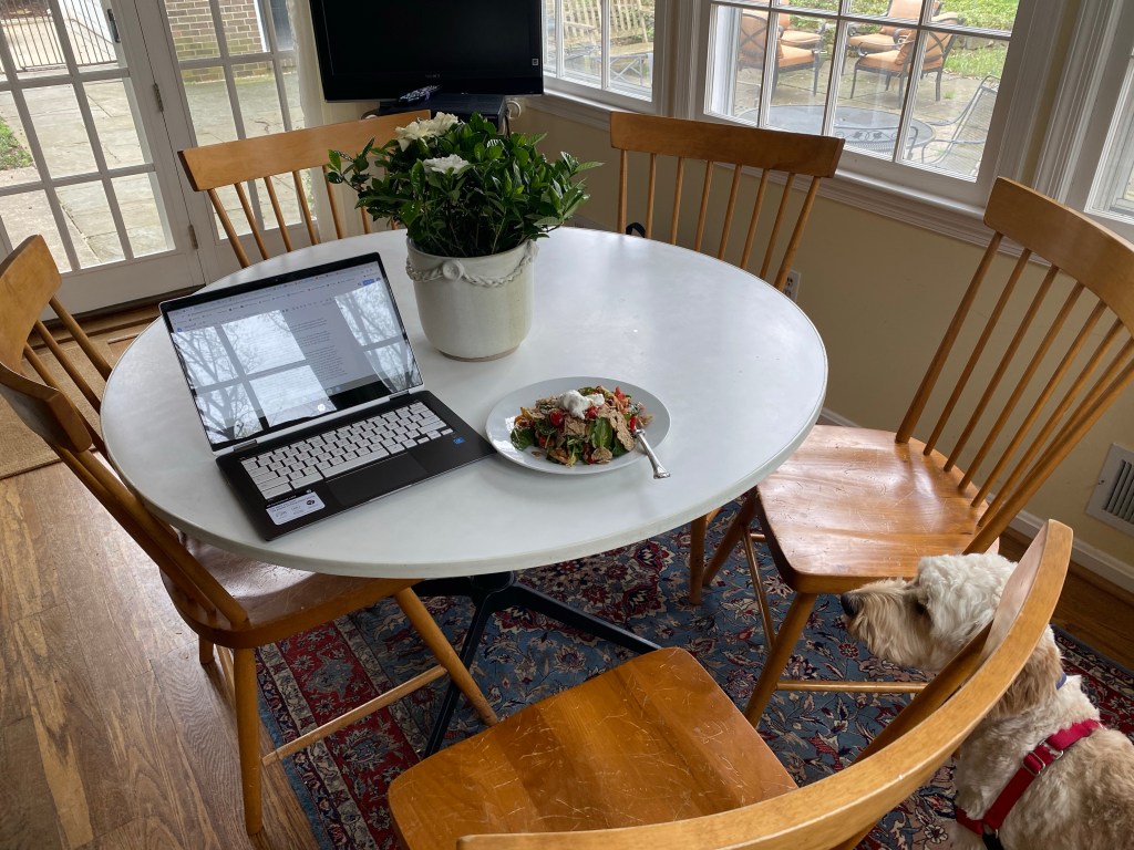 I’m also learning a lot about my colleagues and the challenges they face. While kids crying in the back of conference calls is amusing (and admittedly sometimes annoying), I’m glad to have some insight into people’s lives. I didn’t know that someone I work with weekly cares for an autistic brother. I didn’t need to know that in the past, but I’m glad I know it now because that care doesn’t just impact him during conference calls. He brings those worries to work, too, but I’ve never known the burden he carried. Now I do. I think we’re all learning about each other’s lives and families and the unique challenges we all handle, day in and day out. I hope when this is all in the past, we don’t forget each other’s humanity.